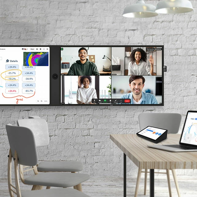 ה‑DTEN D7X Dual 75″ All‑in‑One כוללת שני מסכי מגע 75″ 4K, מצלמה חכמה עם Smart Framing, ו־15 מיקרופונים עם טכנולוגיית Audio AI. המערכת תומכת ב‑Zoom Rooms, Microsoft Teams ושיתוף תוכן אלחוטי, ומספקת חווית שיחה מקצועית בכל חדר ישיבות גדול.